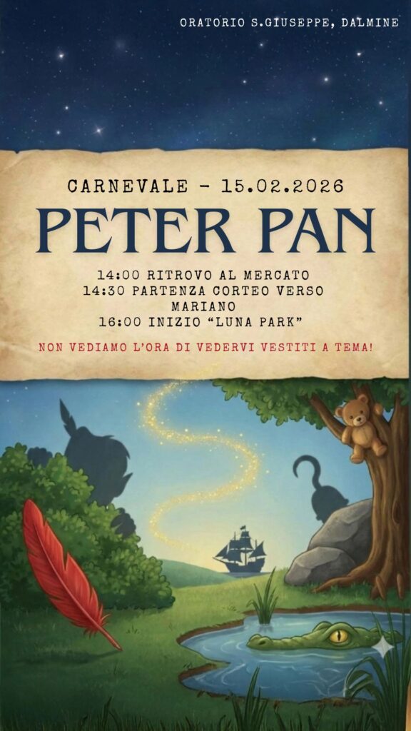 Il nostro Tema dell’oratorio San Giuseppe sarà “Peter Pan”.
