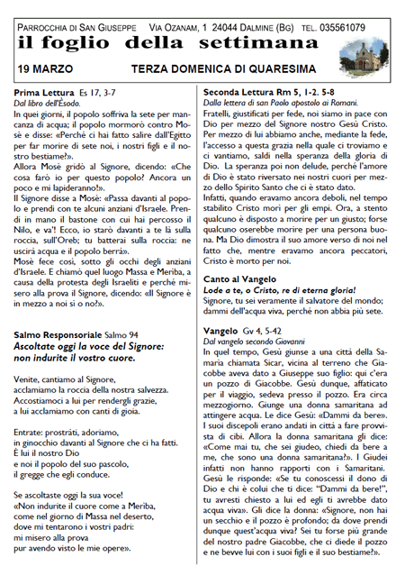 Il foglio della settimana