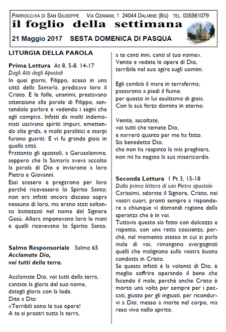 Il foglio della settimana