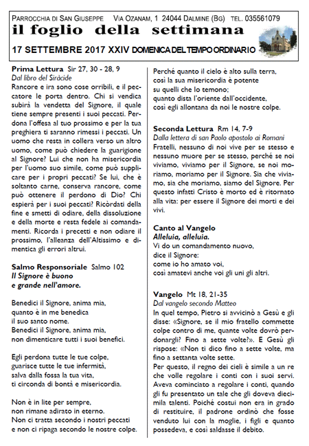 Il foglio della settimana
