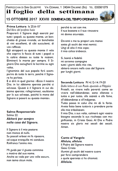 Il foglio della settimana