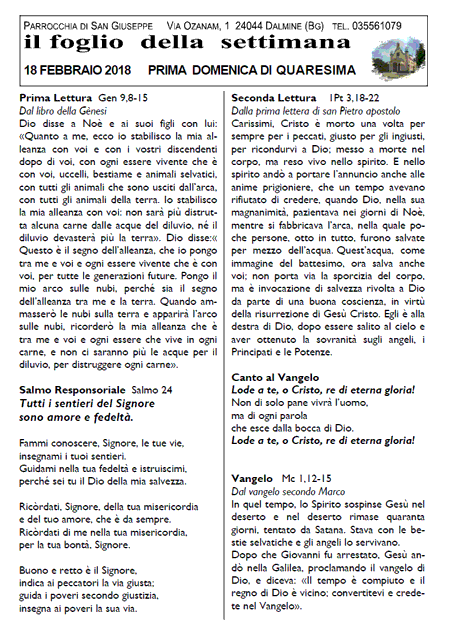 Il foglio della settimana