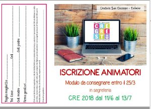 Modulo iscrizione Animatori CRE 2018 Invia un link a un amico via e-mail (Si apre in una nuova finestra) E-mail Stampa (Si apre in una nuova finestra) Stampa Pubblicato il 13 Marzo 2018 da Segreteria OSG in Il CRE, il CRI, Proposte per tutti