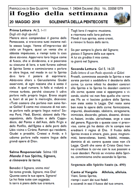 Il foglio della settimana