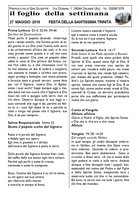Il foglio della settimana