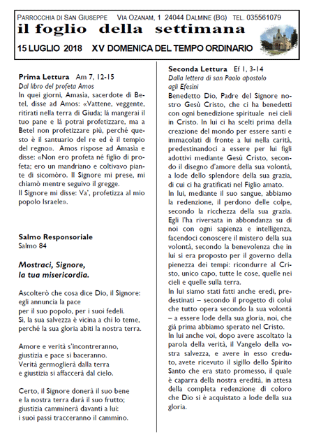 Il foglio della settimana