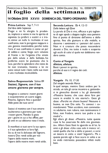 Il foglio della settimana
