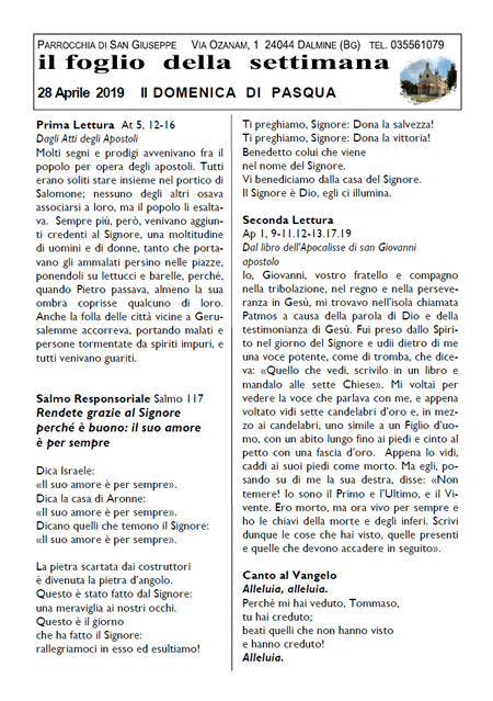 Il foglio della settimana