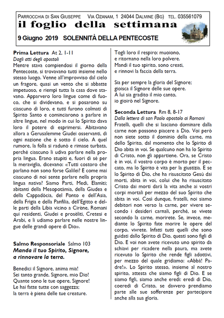 Il foglio della settimana