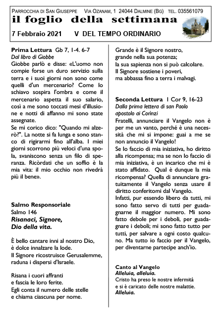 Il foglio della settimana