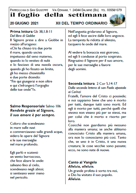Il foglio della settimana