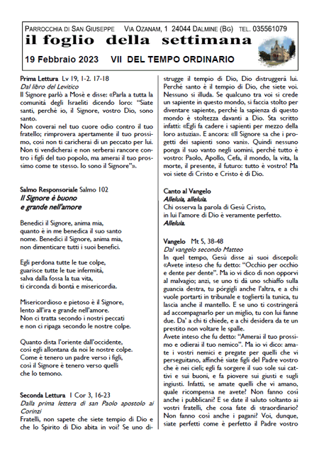 Il foglio della settimana