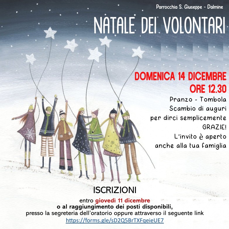 ISCRIZIONI entro giovedì 11 dicembre o al raggiungimento dei posti disponibili, presso la segreteria dell’oratorio oppure attraverso il seguente link https://forms.gle/sD2Q5BrTXFqeieUE7