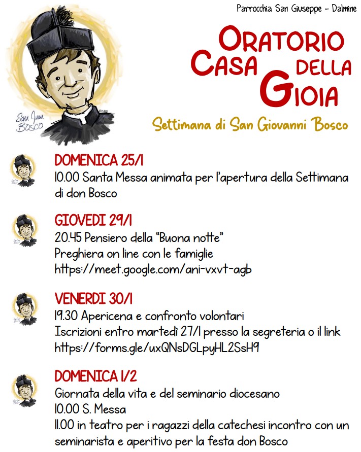 11.00 in teatro per i ragazzi della catechesi incontro con un seminarista e aperitivo per la festa don Bosco