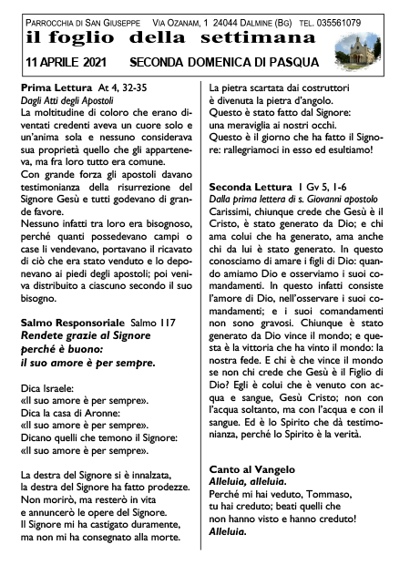 Il foglio della settimana