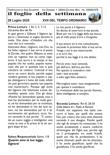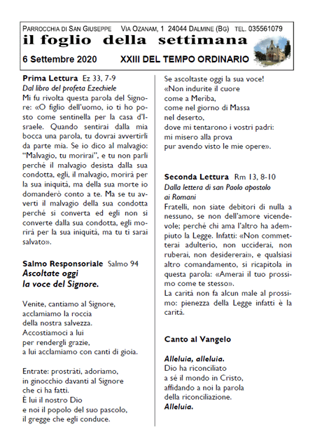 Il foglio della settimana