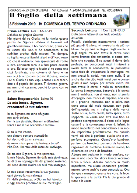 Il foglio della settimana