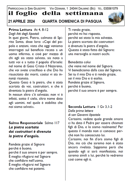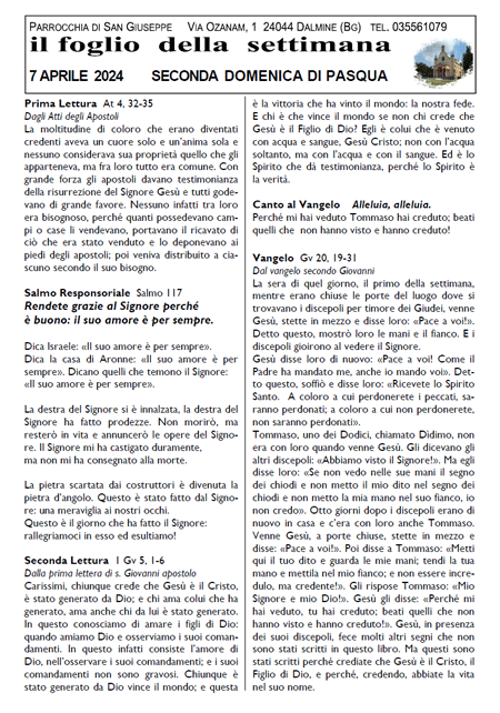 I tempi forti dell'anno liturgico, Il foglio della settimana, Primo piano, Proposte per tutti, Storie di fede e Riflessioni