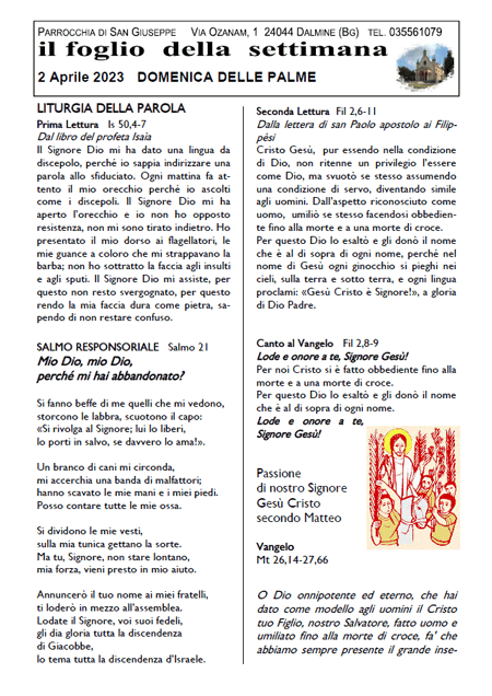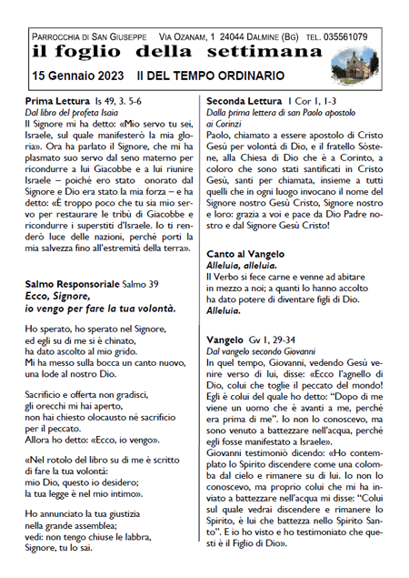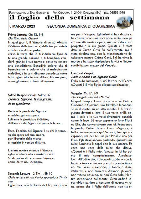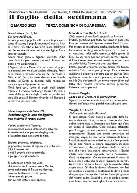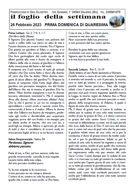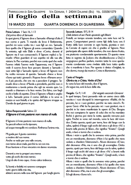 Il foglio della settimana