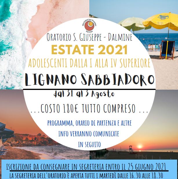 Proposta per l’estate 2021 per gli adolescenti. Andiamo tutti al mare! Lignano sabbiadoro dal 31 luglio al 3 agosto 2021!